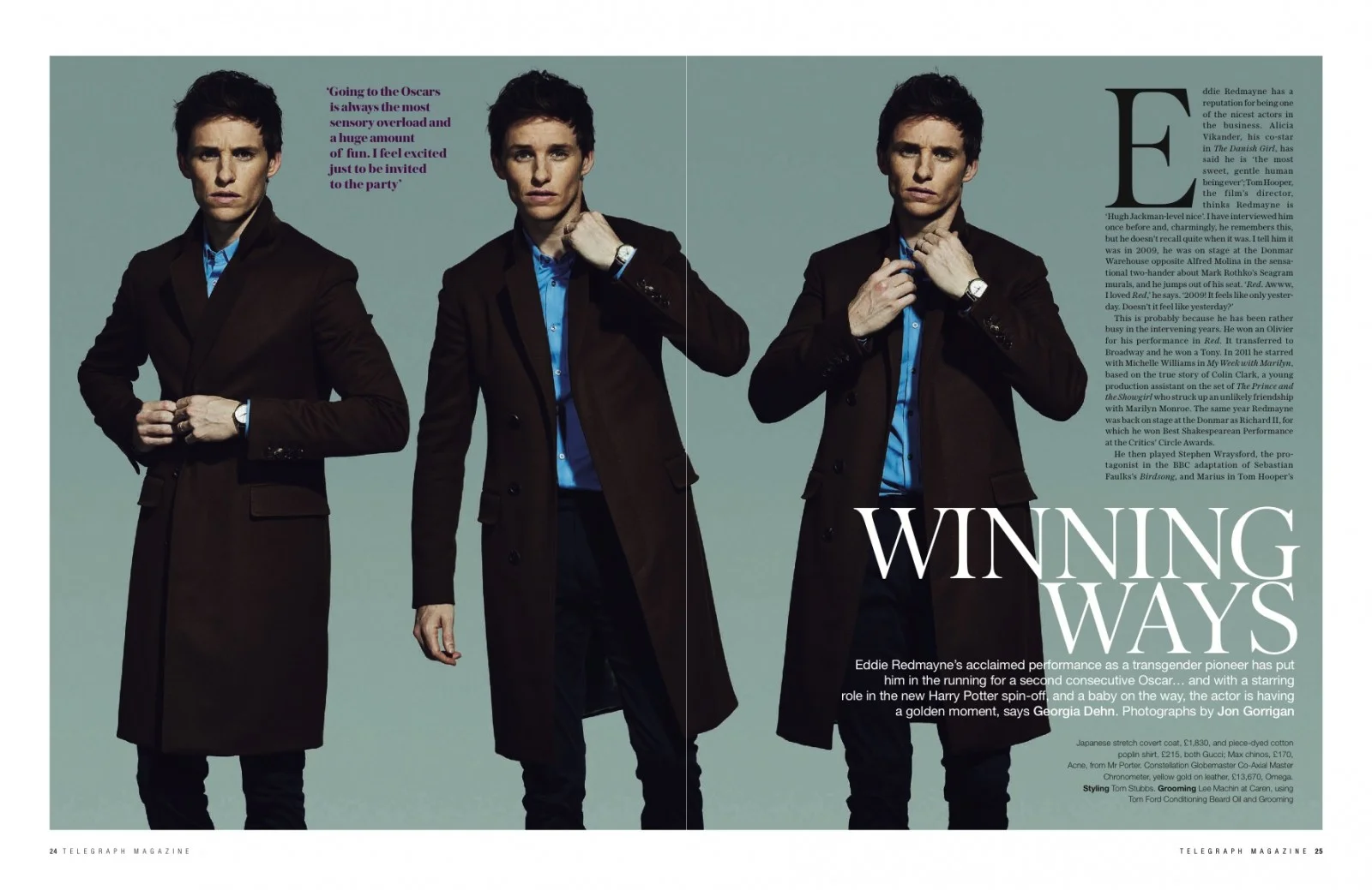 Eddie Redmayne in the Saturday Telegraph